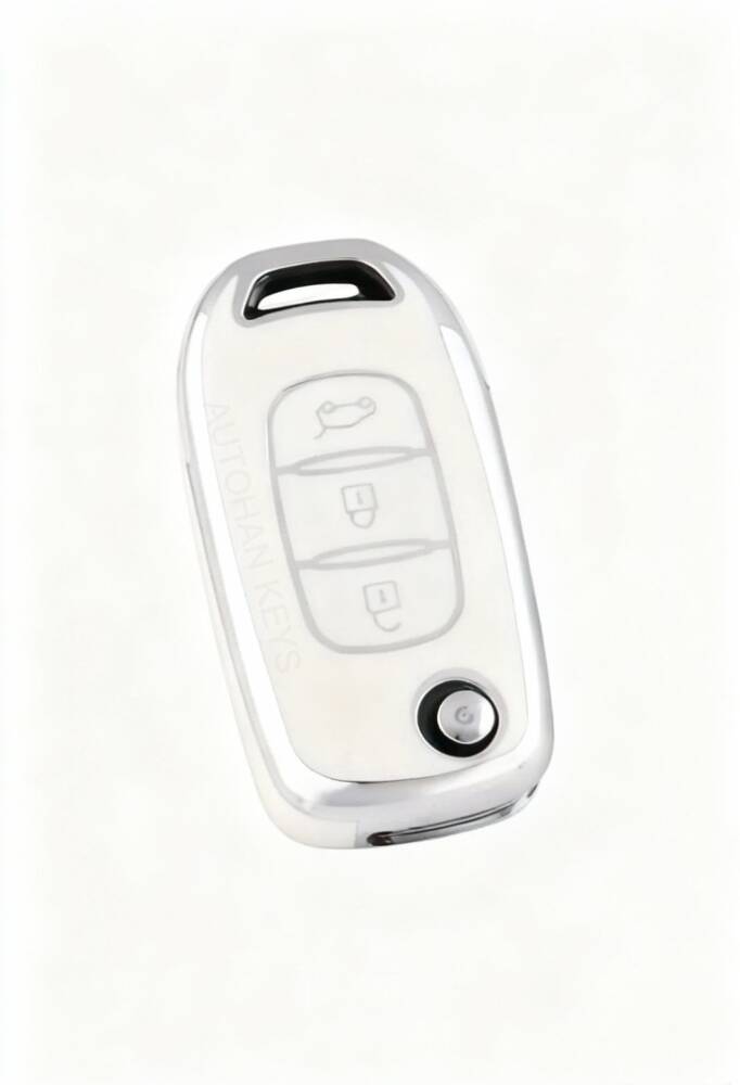 This elegant key cover, specially designed for Ren owners, is compatible with Megane 4, Clio 5, Captur, Taliant, and Express models. With its modern white and silver color combination, it delivers a refined look while providing full protection for your 3-button nano key.